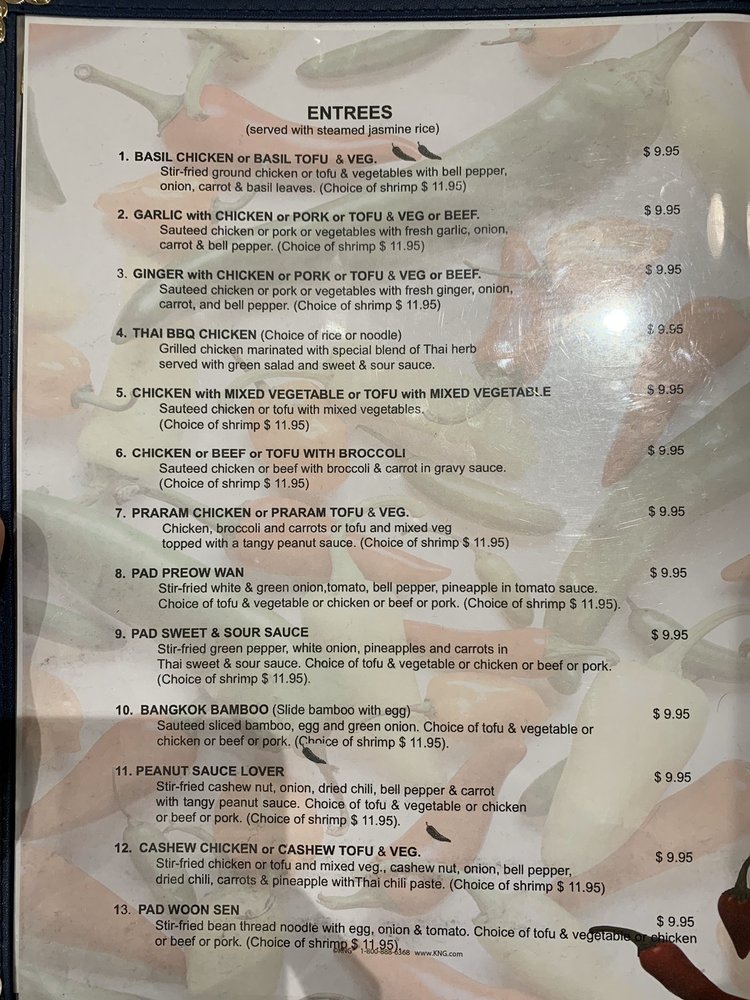 Basil Thai Urbana, located in Urbana, IL, is a casual and classy Thai restaurant offering a variety of dishes. From appetizers like Chicken Satay and Crab Rangoon to refreshing Cold Beverages like Thai Iced Tea with Milk, the menu at Basil Thai Urbana is sure to delight your taste buds. Customers have praised the restaurant for its generous portion sizes, flavorful dishes, and reasonable prices. The Lime Cream Sauce Chicken has been particularly highlighted for its crispy chicken and perfect balance of flavors. While some dishes like the Beef Noodle Soup may have room for improvement, the overall dining experience at Basil Thai Urbana is worth a visit, especially if you're near UIUC and looking for a convenient and tasty meal.